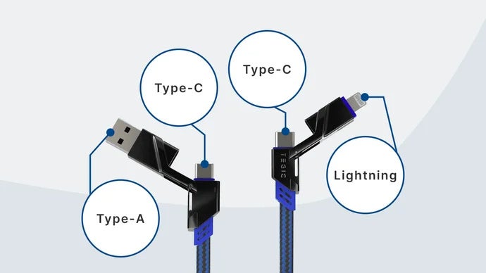 “ケーブル迷子”から解放。最大100W急速充電、30,000回以上の折り曲げ試験クリア、データ転送にも対応した4in1充電ケーブルが日本上陸