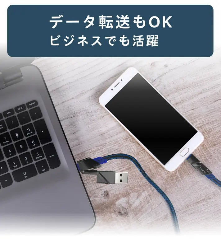 充電だけでなく、480Mbpsのデータ通信にも対応。OTG機能にも対応し、さまざまな場面で「充電と同期」を一本化します。