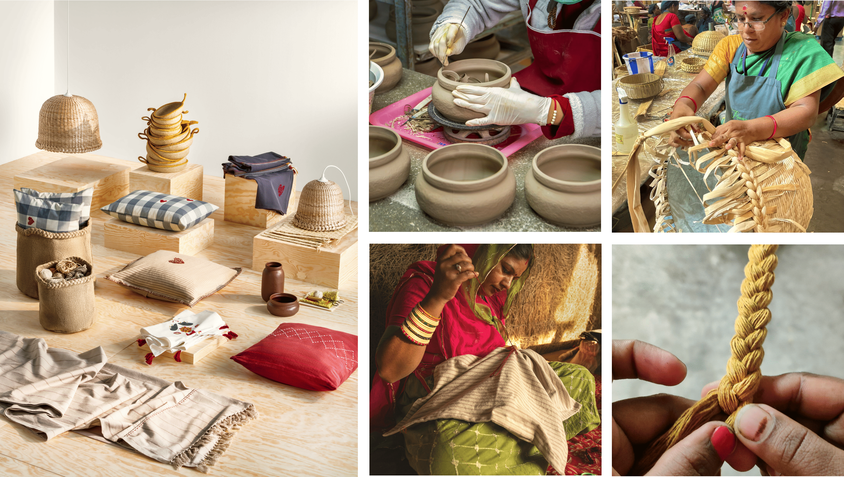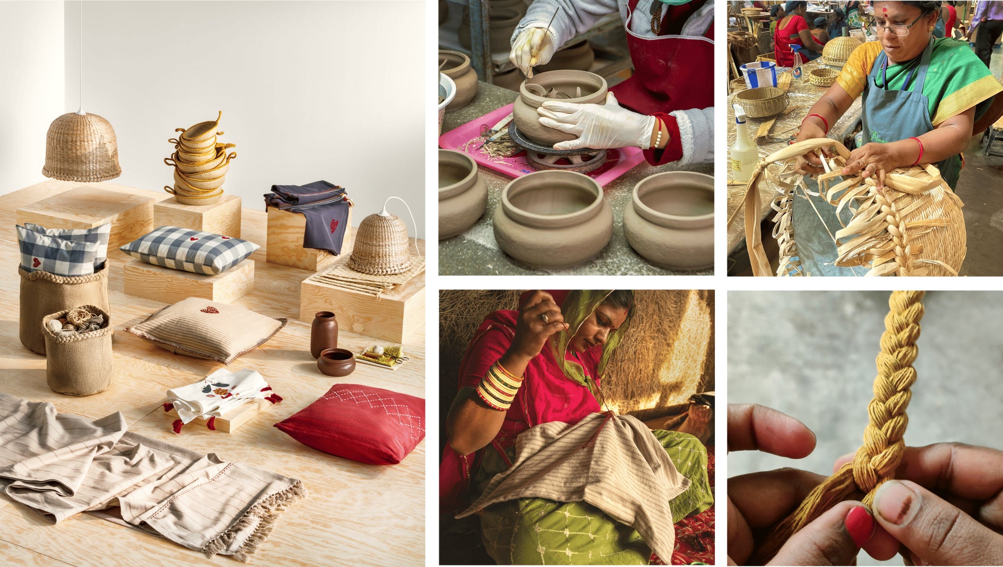本コレクションの新作は、ジュートやバナナなどの天然繊維のみを使用したサステナブルなハンドメイドでユニークなペンダントランプシェードや、色んな使い方ができる色味がきれいなせっ器製の器、手刺繍の赤いハートがポイントのクッションカバーなど熟練した職人の手で一つひとつ仕上げています。1つとして同じものがない本コレクションで自分だけの特別な空間を作り上げてみてはいかがでしょうか。