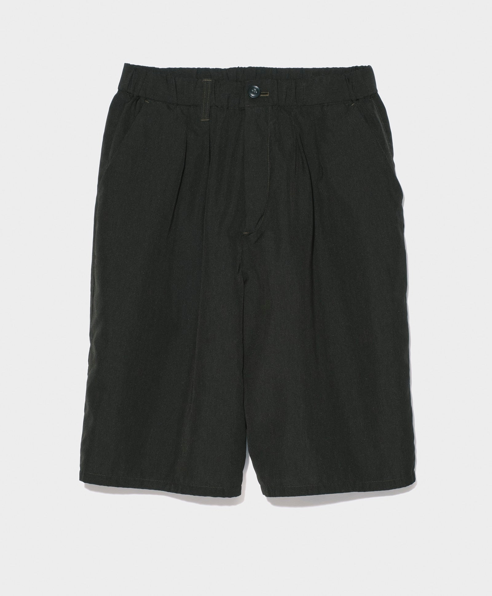 クリースラインを入れた、フォーマルな印象の2タックショートパンツ。ゴム入りのウエストは、ベルト内側の