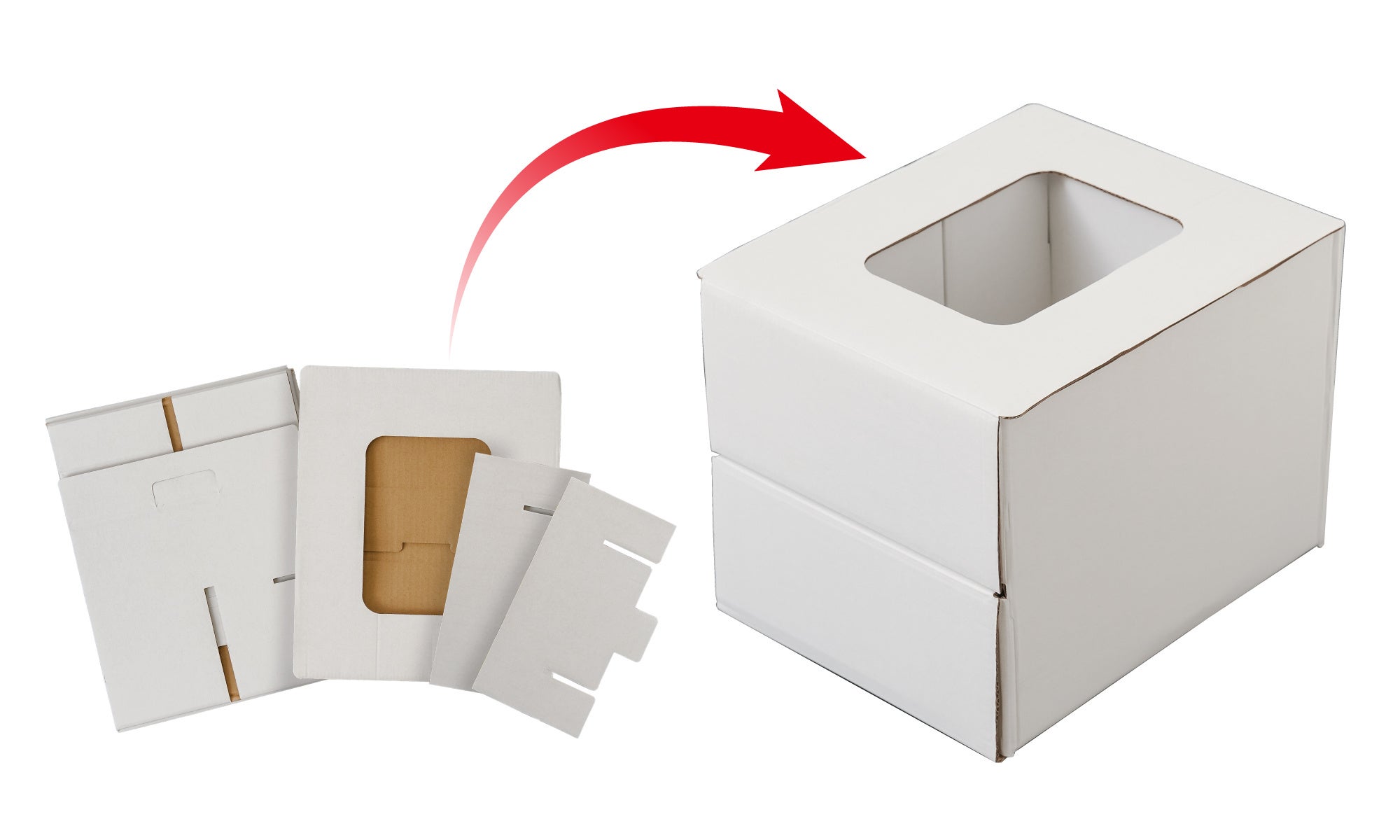 トイレボックスの組み立てはテープや工具不要!折って差し込むだけで簡単に組み立てられます。