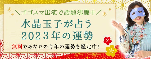 テレビ番組「ゴゴスマ」出演で話題の占い師「水晶玉子」が月額公式サイトで、『2023年の運勢』を無料公開しました。水晶玉子が占う 2023年のあなたの運勢は、どなたでも無料でご覧いただけます。