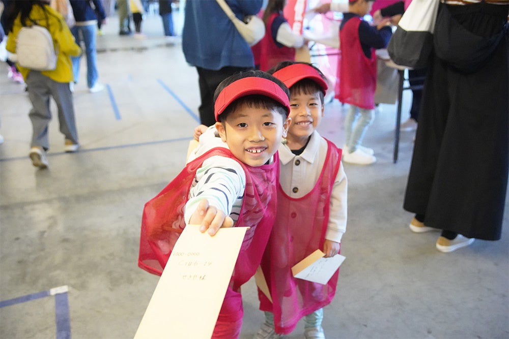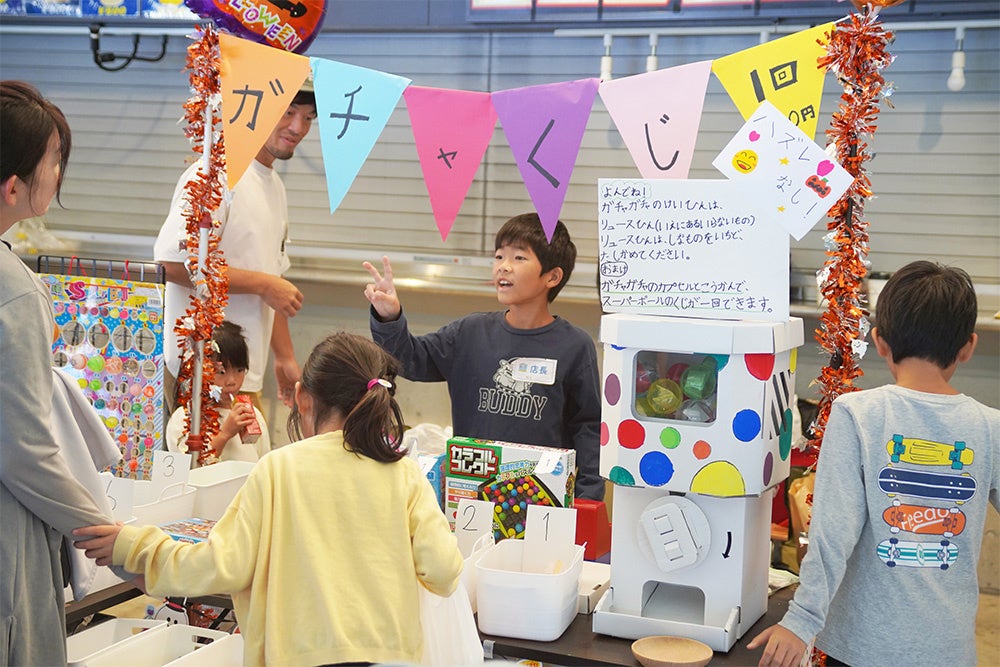 子どもたちが作った商品やサービスを「キッズ店舗」で販売。どなたでもお買い物ができるエリアです。