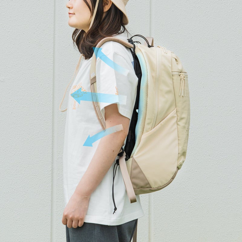 リュックに: 通勤・通学時の背中の汗を抑え、到着後の不快感を軽減。