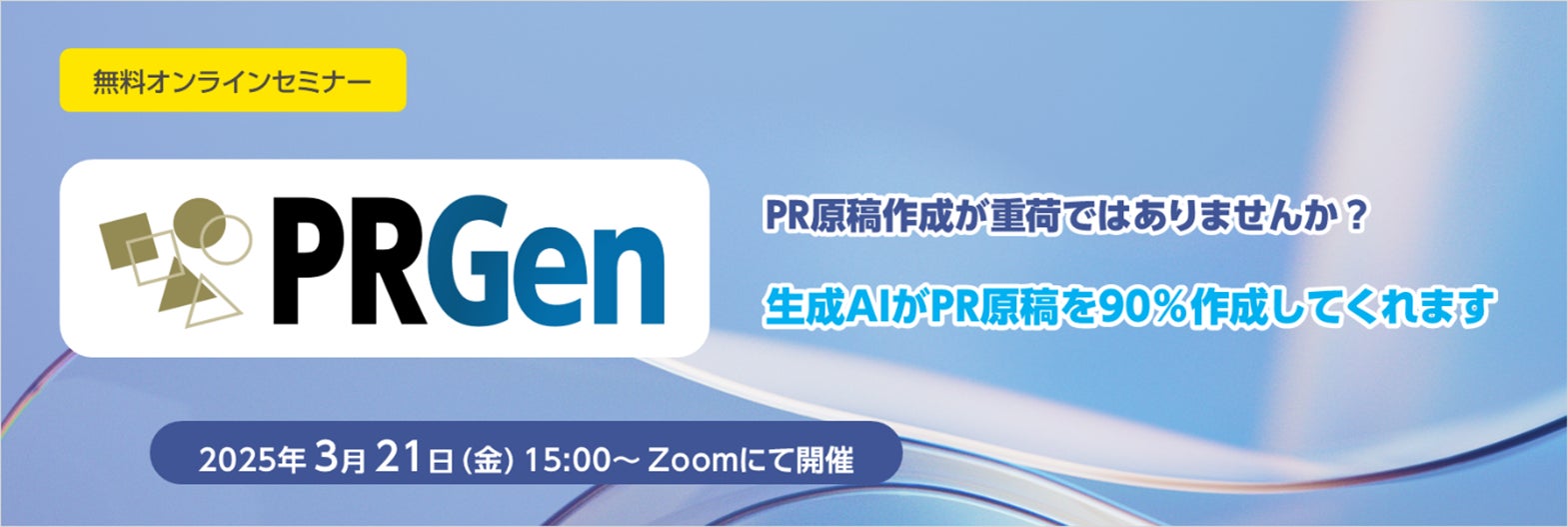 株式会社ニーズウェル(本社:東京都千代田区、代表取締役会長兼社長 船津浩三)は、2025年3月21日(金)15時より、無料オンラインセミナー「PR原稿自動生成ソリューション「PRGen」 ~PR原稿作成が重荷ではありませんか?生成AIがPR原稿を90%作成してくれます~」を開催します。