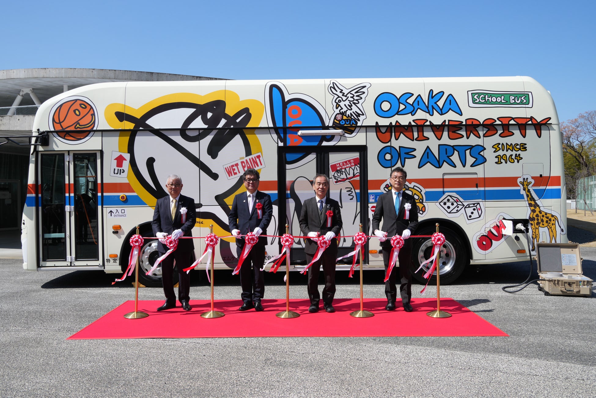 • 大阪芸術大学の卒業生がデザインしたオリジナルラッピング電気バスのお披露目出発式を大学内で開催