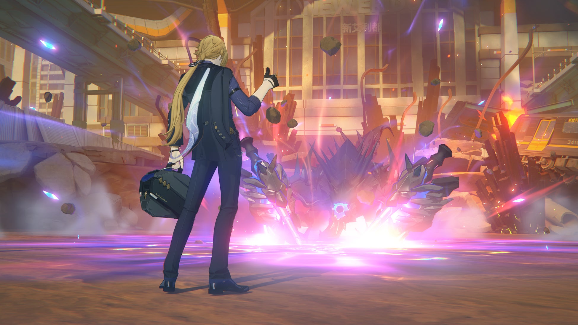 ヒューゴは、氷属性強攻エージェントとして、一瞬にしてアタッシュケースを鋭利な鎌へと変形させ、敵に攻撃となぎ払い斬撃を繰り出すことが可能。ブレイク状態の敵に命中すると、累算効果が発動し、敵の残りのブレイク時間に応じてヒューゴの与えるダメージが大幅にアップします。