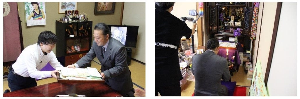 (3) 美空ひばりのお仏壇へ合掌、お手紙をお供え