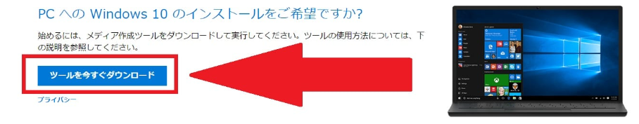 Step2:「ツールを今すぐダウンロード」をクリックしてインストールメディア作成ツールを保存します。続いて、PCに保存された「MediaCreationTool.exe」を選んでください。