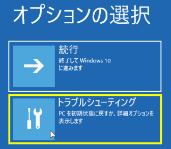 Step4:オプションの選択画面が表示されますので、「トラブルシューティング」をクリックします。