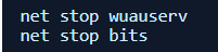 Step2:コマンド「net stop wuauserv」と「net stop bits」を入力して実行します。