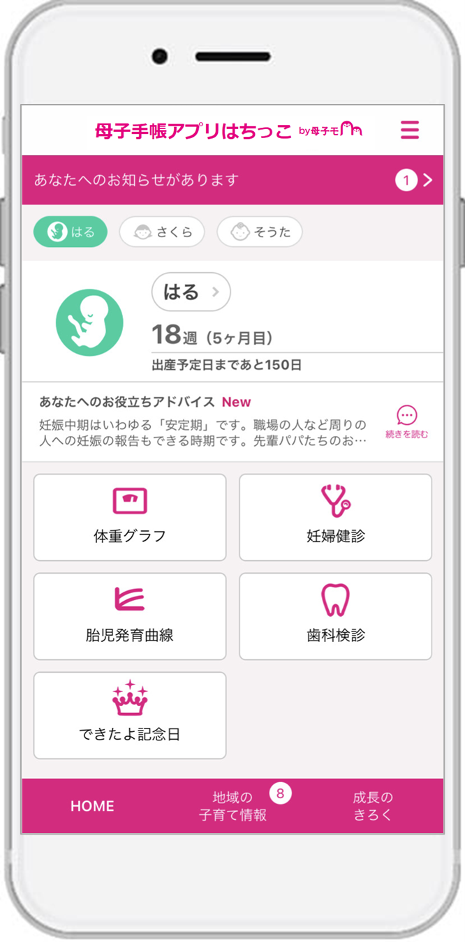 この度、子育て支援の一環として導入いたします『母子手帳アプリはちっこ』は、妊娠期から子育て期において、子育てや行政手続きに関する情報の入手や、予防接種スケジュールの管理等を行えるスマートフォンアプリとなります。今後さらに当アプリを活用した乳幼児健診のDX化も検討していますので、ぜひご活用いただき、日々の子育てにお役立てください。