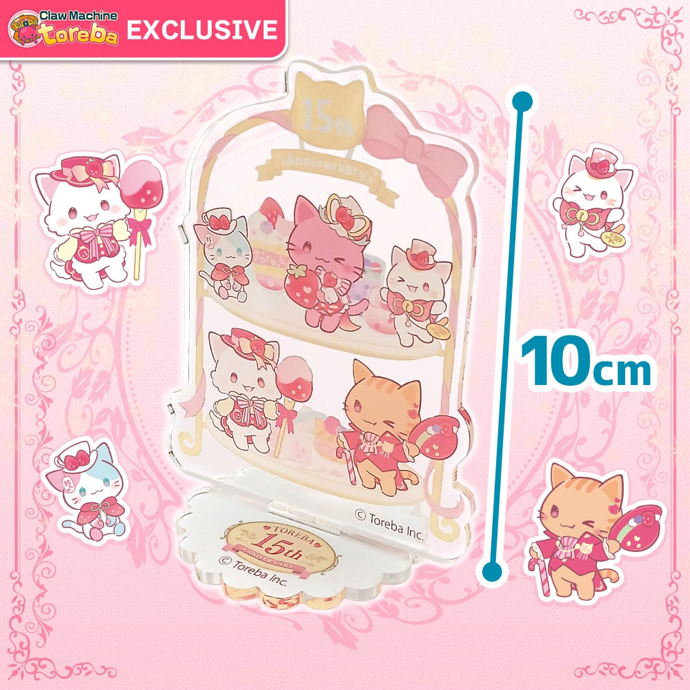 台座もしっかり15周年アニバーサリーロゴ入りの特別仕様で、アフタヌーンティーのスタンドにちょこんと並んだトレタたちが、あなたのデスクを華やかに彩ります。