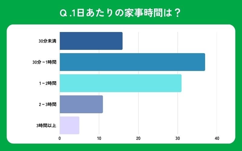 ・1日あたりの家事時間として最も多いのが「30分〜1時間」。