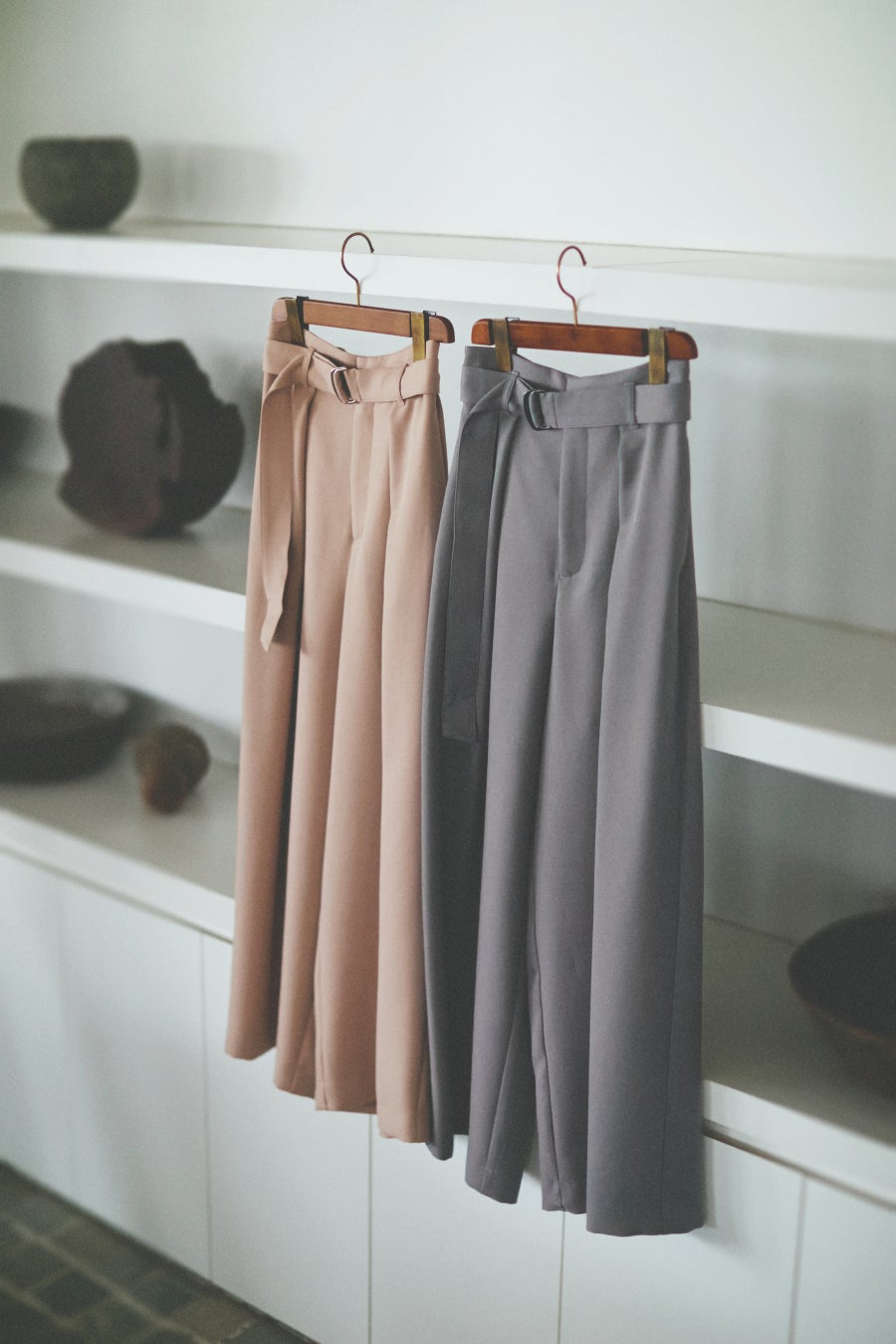 吉田さんのこだわりが詰まったベルト付きタックワイドパンツです。脚を驚くほど長く見せるハイウエストと、下腹をきれいにカバーする立体的なロングタックが最大の特徴。ハンサムなロングベルトが全体のスタイルを引き締めます。