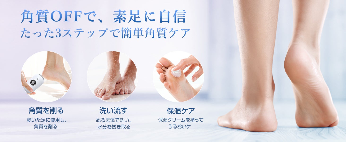 硬くなった角質やタコ、乾燥によるひび割れをスムーズに除去し、しっとりなめらかな素足へ導きます。