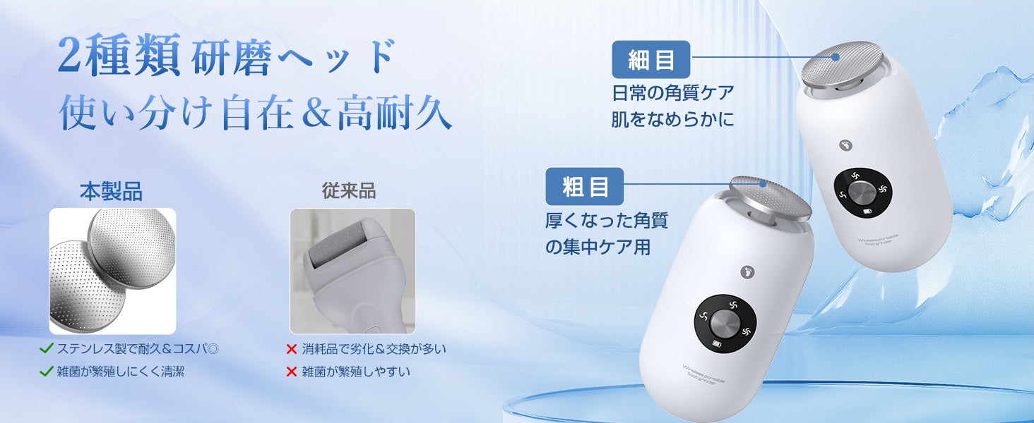 過度な圧力を防ぎながら角質だけをしっかり除去する安心設計です。