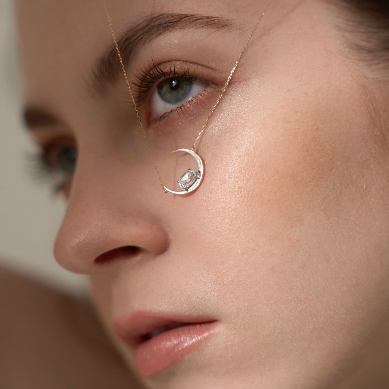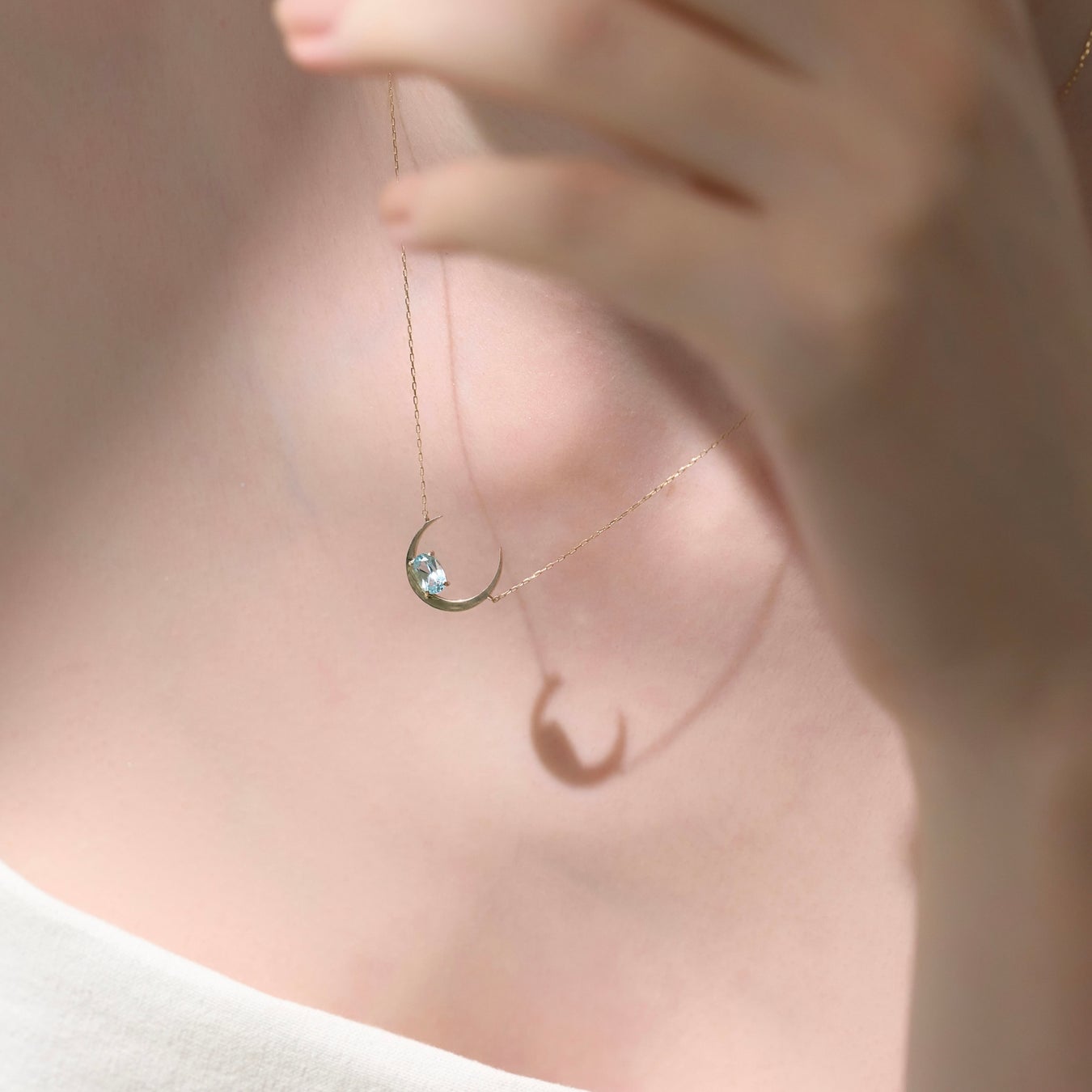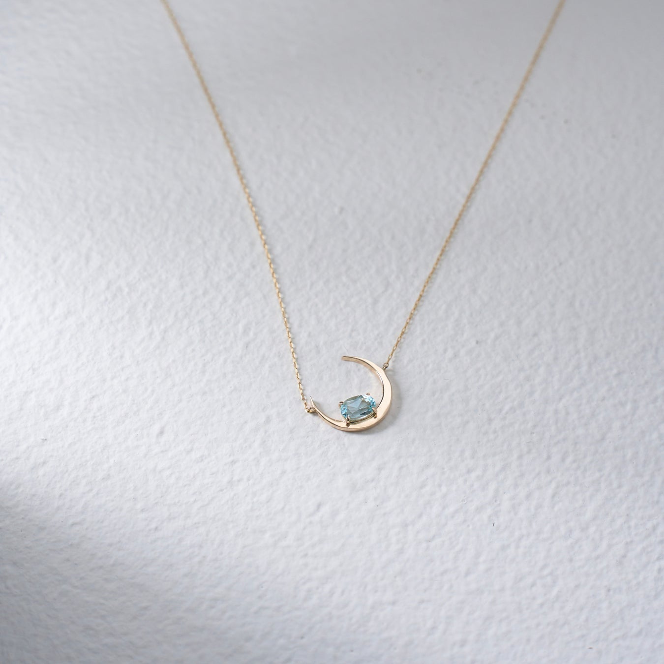 新月から満月に向かう途中である「三日月」は、物事の始まりや成長、希望を象徴していると言われています。光り輝く天然石が合わさり、さらに満月へのパワーを増して輝いていく様を表現しています。また、華奢なチェーンと組み合わせることで、まるで月が浮いているような神秘的な雰囲気を楽しめます。