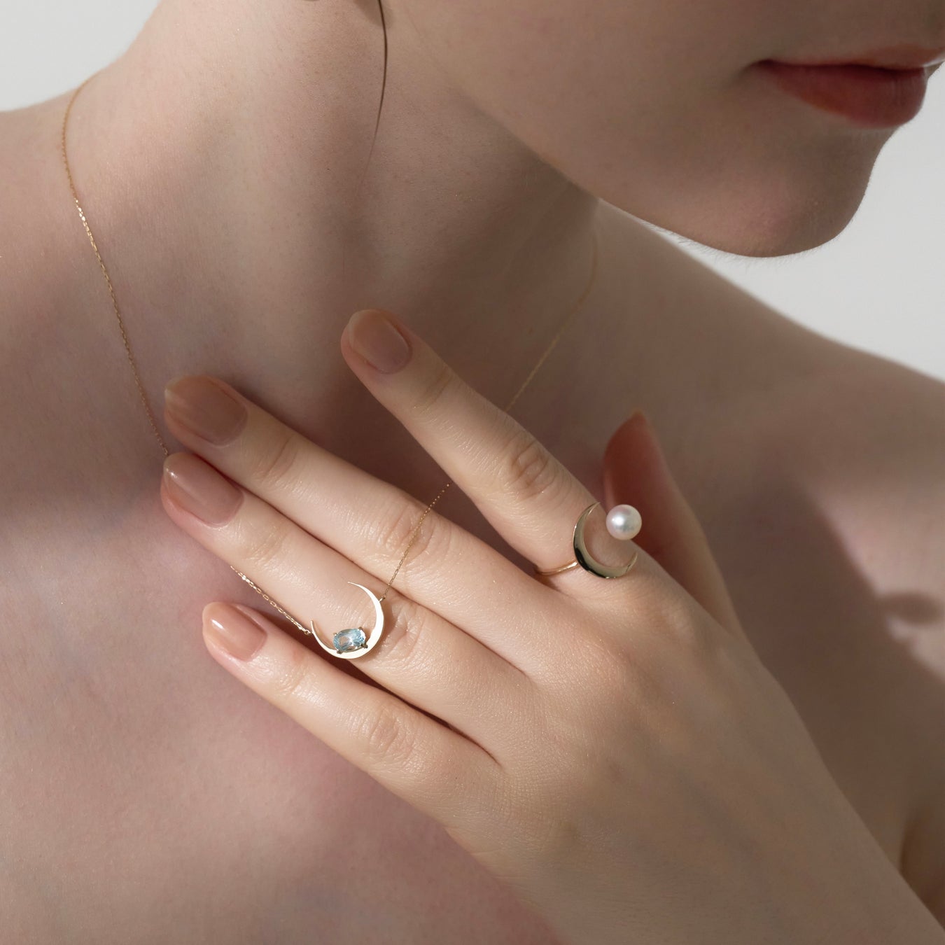 「mi luna(ミルーナ)」はスペイン語で「私の月」という意味です。今回の「Luna Collection」では、ブランド名の由来でもある月をモチーフに採用しました。月のモチーフを使うのは、実はブランド初の試み。6周年を記念して、ブランドを象徴するデザインをと考えた結果たどり着いたアイデアです。月の満ち欠けの神秘性を表現したデザインのなかで上質なアコヤパールが上品に輝く「Luna Ring」、徐々に満ちていく三日月が輝く天然石をそっと抱くようなデザインの「Luna Necklace」の2アイテムをご用意しています。どちらも、月が満ち欠けするときの神秘的な美しさとエネルギーが、持つ人の「願い」を叶え、「希望」与えてくれるようにという願いをこめて制作されました。
