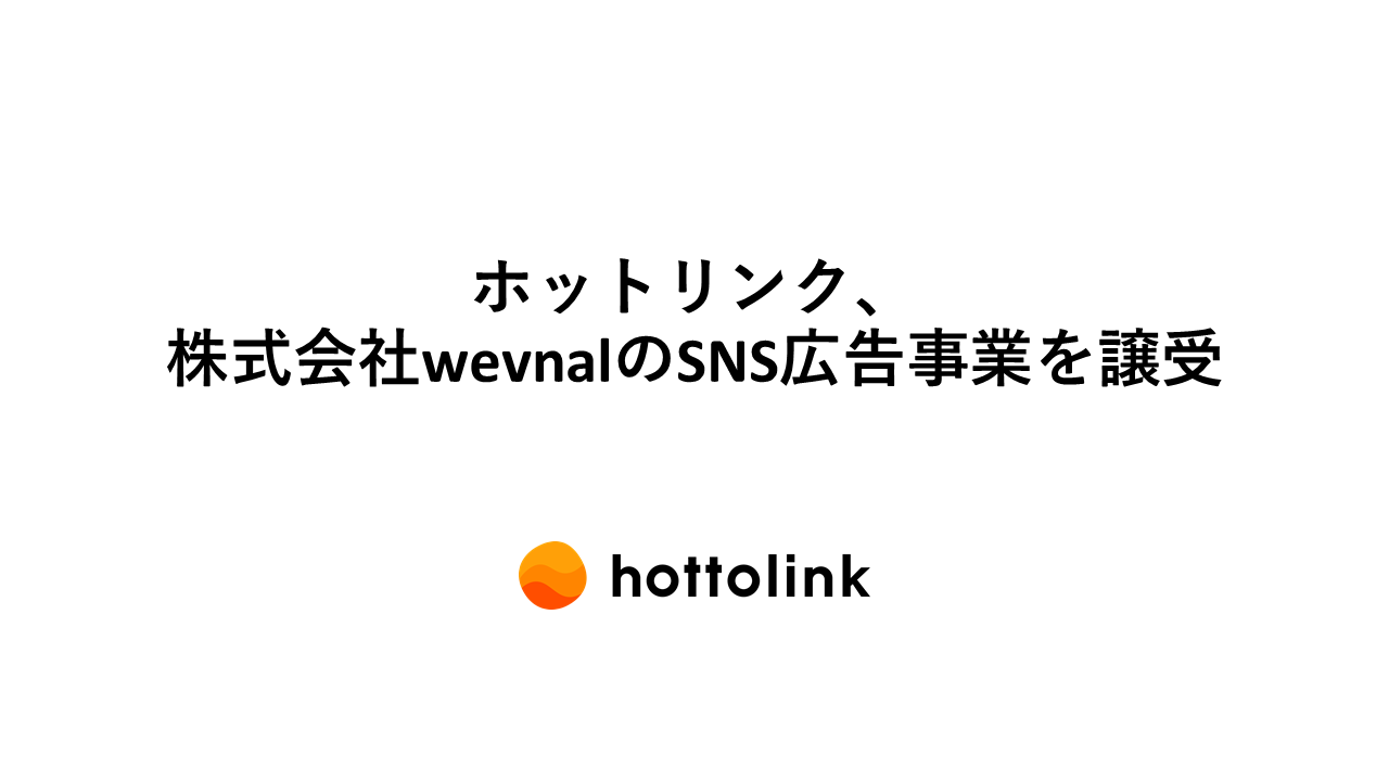 SNSマーケティング支援サービスを提供する株式会社ホットリンク(本社:東京都千代田区、証券コード:3680、代表取締役グループCEO:内山幸樹、以下ホットリンク)は、2023年1月27日開催の取締役会において、株式会社wevnal(以下wevnal)のSNS広告事業及び一部メディア事業(fasme)をwevnalから当社が譲り受けることについて、事業譲渡契約を締結する決議をいたしましたので、お知らせいたします。