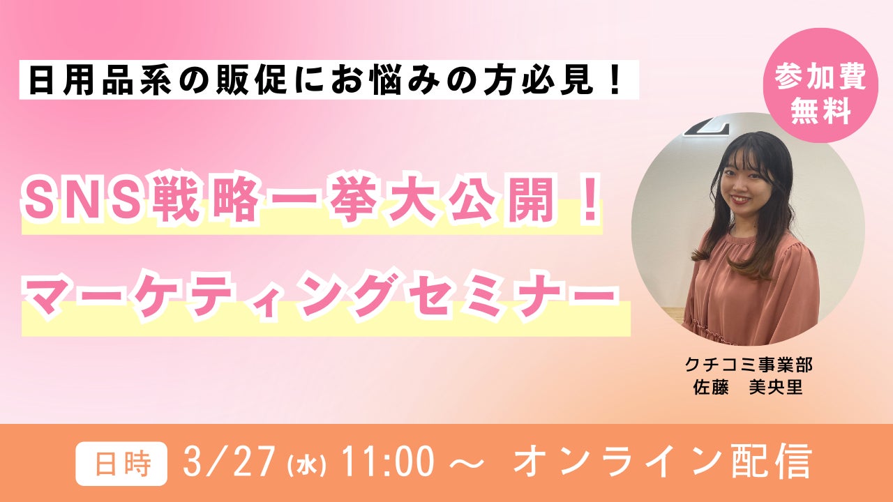 【3月27日開催】日用品系の販促にお悩みの方必見!SNS戦略一挙大公開!!【無料オンラインセミナー】