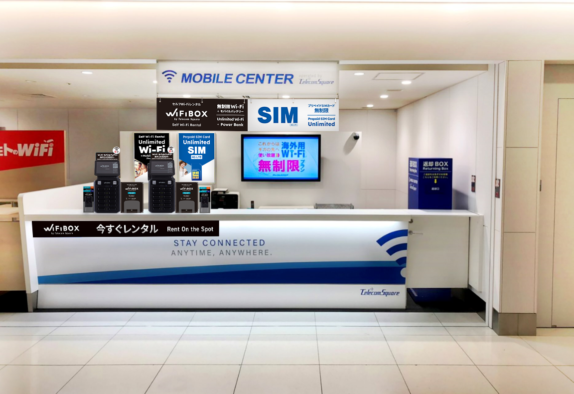 現在は成田空港・羽田空港・関西国際空港などの全国の主要空港に加え、東京駅構内、新宿や渋谷の観光案内所、新宿ミロードなど市中や商業施設でもサービスを提供し、順次全国展開を行っております。そしてこの度、新千歳空港 国際線ターミナルビル2階 到着ロビーにある当社カウンターの営業再開にあわせて、7月1日(土)8:30よりWiFiBOXのサービスを開始いたします。また、北海道エリアでは初めての設置となり、これによりWiFiBOXの設置箇所は計16施設・21箇所となりました。今後も国内空港や駅、商業施設などへの設置を積極的に進め、よりお客様の利便性の向上を目指してまいります。