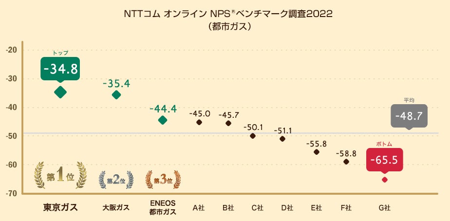 NTTコム オンライン、都市ガスを対象にしたNPS®ベンチマーク調査2022の結果を発表。NPS1位は東京ガス