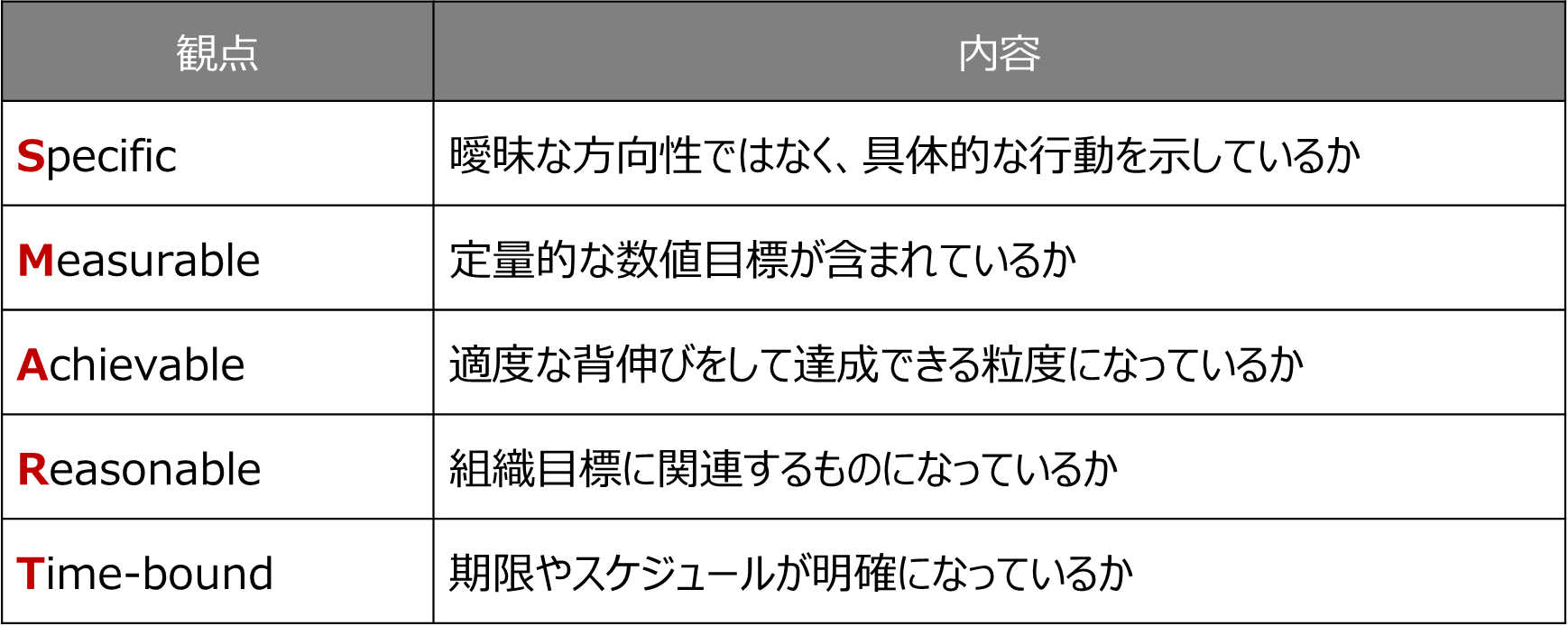 本調査において、目標設定の際に活用されている「SMART(スマート)」の観点を参考とした。