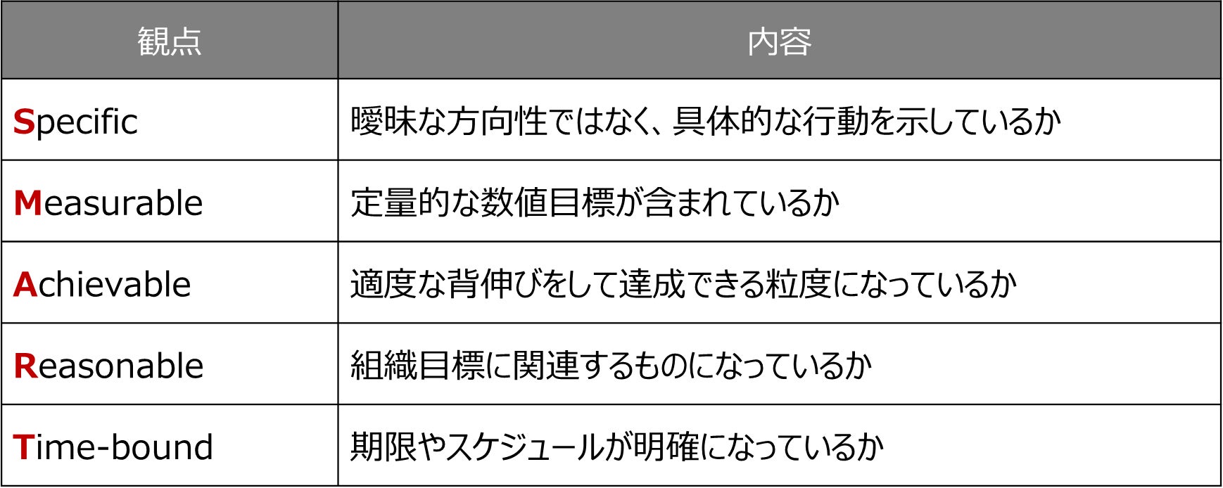 「Specific(具体性)」 :具体性に加えて、実際の行動に繋がるような表現であることが重要