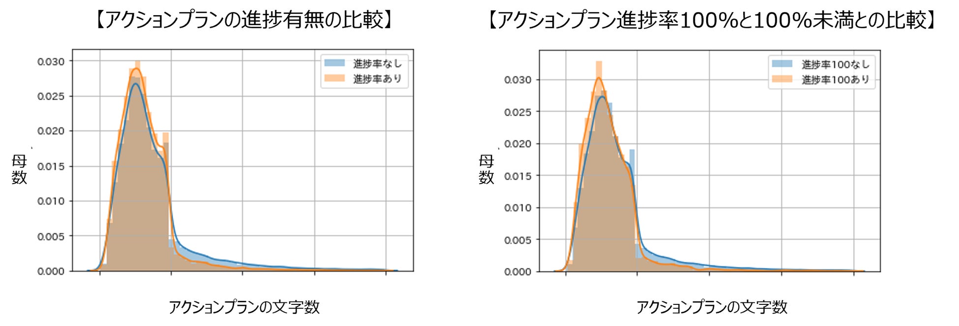 以上のことから、アクションプランの内容が、表現が短く端的で達成できる粒度であると、アクションプランの進捗率が高いと言える。