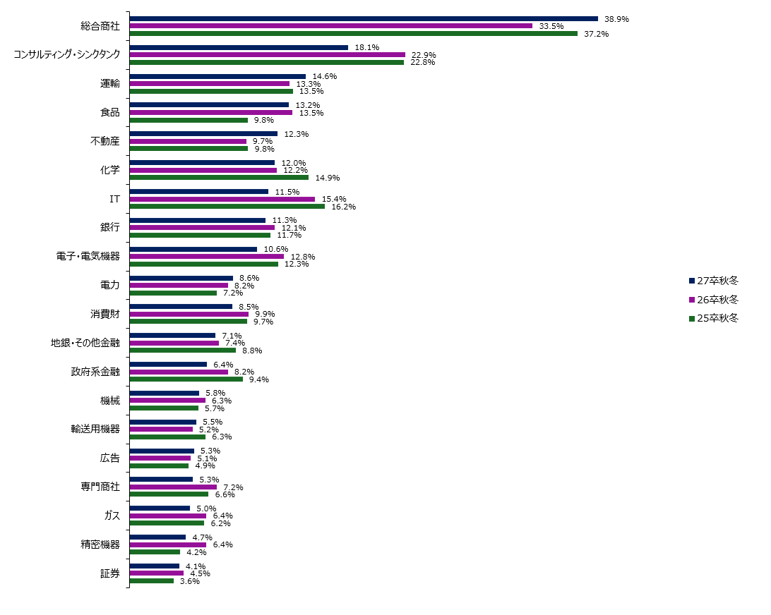 【コンサルの低下】 長らく人気を牽引したコンサル業界が“高止まり”から低下局面へ。