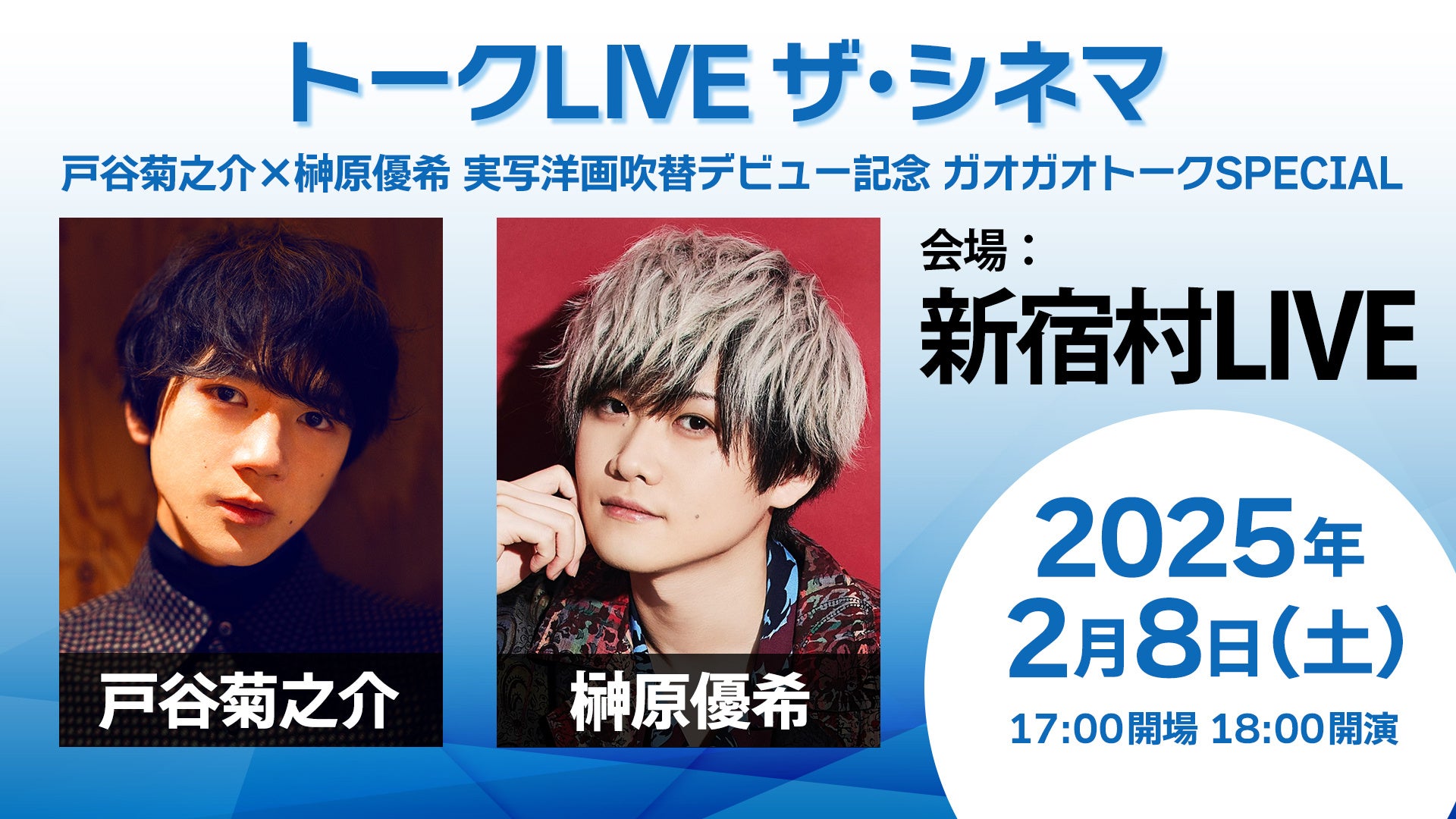 洋画専門チャンネルザ・シネマ(AXN株式会社、本社:東京都渋谷区、代表取締役社長 大園天樹)では、第18回声優アワード新人賞を受賞された今注目の若手声優、戸谷菊之介さんと榊原優希さんのお二人の実写洋画吹替デビューを記念したトークイベントを2月8日(土)に新宿村LIVE(東京都新宿区)にて開催いたします。お二人のインタビューコメントが到着、そして当日会場にて豪華抽選会の開催が決定いたしました。