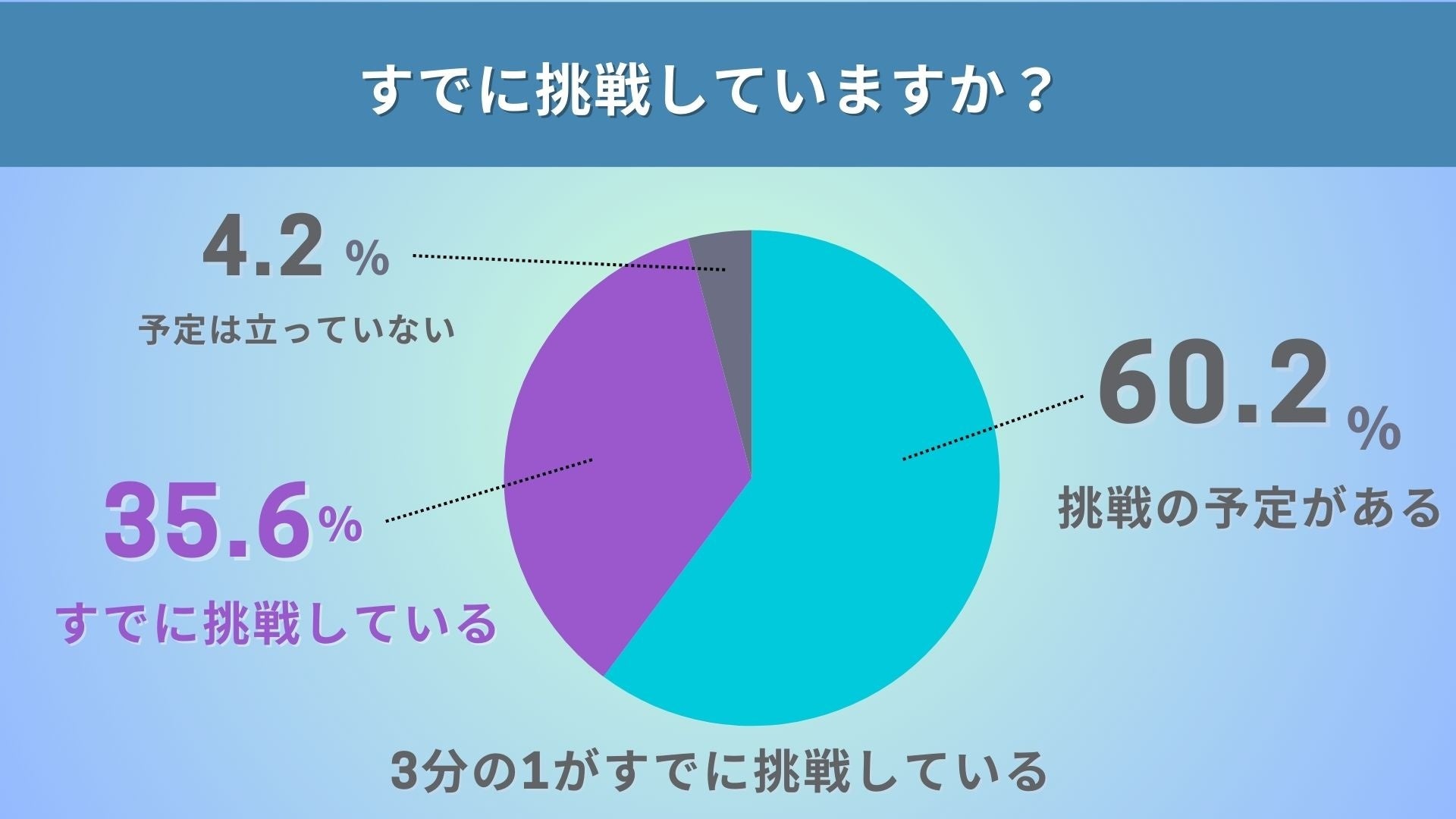 3割以上がすでに挑戦していて、6割は挑戦の予定が立っている