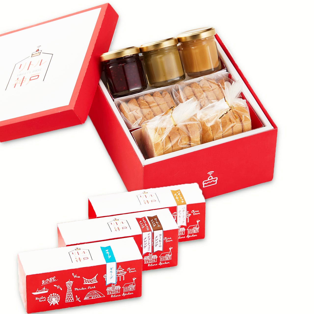 中に詰めるお菓子は、神戸の有名パティスリー「神戸洋藝菓子ボックサン」や「パティスリーAKITO」、「パティシエ ニシカワケンジ」などのこだわりのお菓子からお選びいただけます。可愛いBOXに入っており、お手土産にもピッタリです!