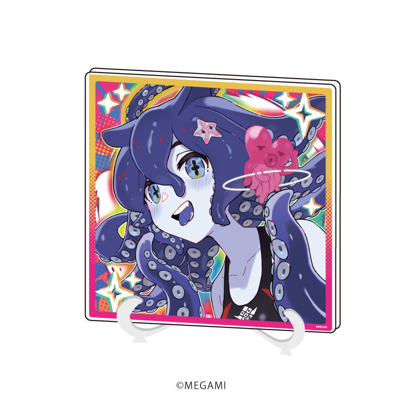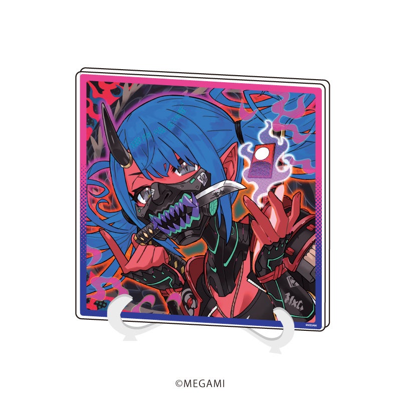アクリルフィギュアプレートは、ダイカットで加工されたパーツを台座にはめ込んで飾るスタンド型アイテムです。縦横最大120mmの大きさで、全身衣装&ポージングが見られる貴重な一品。3Dの立体物となった全5種の『MEGAMI』たちをお楽しみください。