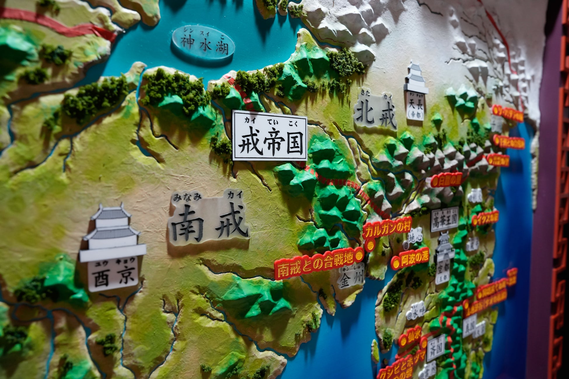 ヨナたちが縦横無尽に旅を続ける大陸の「半立体ジオラマ地図」や様々な姿を見せるアオ(プッキュー)が愉快に暮らす森をイメージした造形展示など、作品の世界観をお楽しみいただける空間となっています。