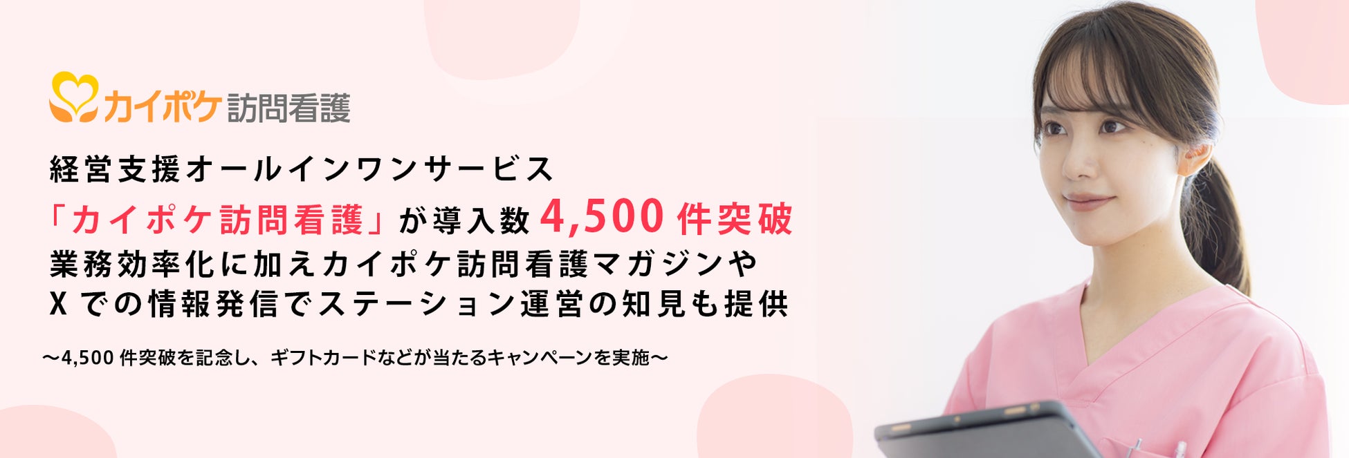 経営支援オールインワンサービス「カイポケ訪問看護」が導入数4,500件突破。業務効率化に加えカイポケ訪問看護マガジンやXでの情報発信でステーション運営の知見も提供