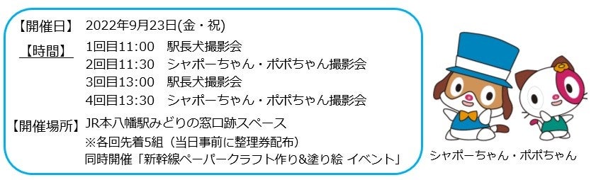 JR東日本千葉支社マスコットキャラクター「駅長犬」、シャポー公式キャラクター「シャポーちゃん・ポポちゃん」 と一緒に撮影できる撮影会を開催いたします。