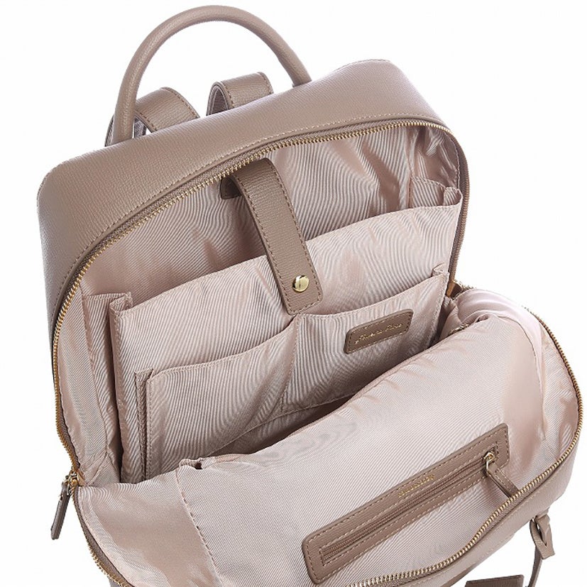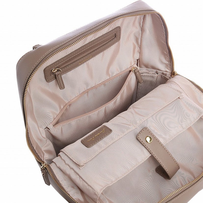 通勤や通学で活躍するA4対応の2サイズ展開。小サイズにはA4クリアファイルが収納できる大きめポケットが、大サイズにはPC収納部(13.3inch対応)が付いています。その他にも、中身が見やすいオープンポケットや、しっかり収納できるファスナーポケット、小ぶりのアクセサリーポケット、使わない時は折り畳めるボトルホルダー付き。