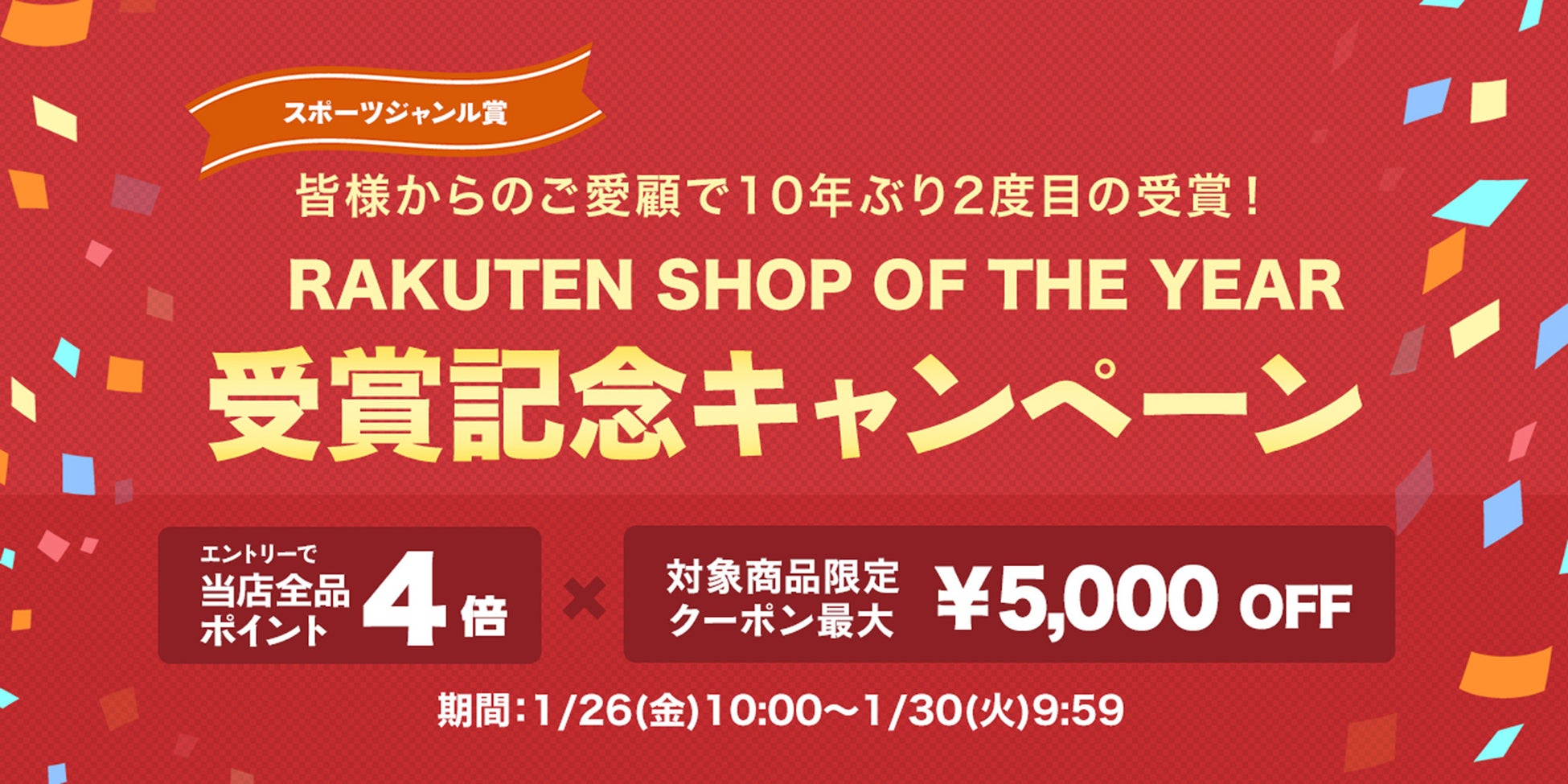 今回の受賞を記念いたしまして、2024年1月26日(金)10:00から2024年1月30日(火)9:59まで、楽天市場店の商品全品がポイント4倍になる受賞記念キャンペーンを実施いたします。また、一部の商品ではお得なクーポンもご用意しておりますので、ぜひご利用ください。