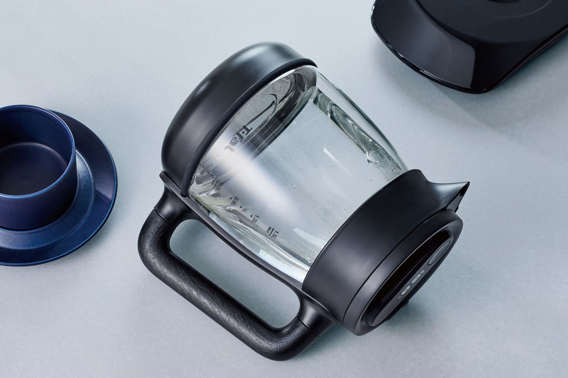 フランス語でティーポットを意味する“テイエール” が名前の由来である「ティエール ロック コントロール 1.5L」は、 “茶こし”がついた温度コントロールタイプのガラス製電気ケトルです。お湯を沸かした後に付属の“茶こし”を使えばティーポットいらず、1台2役で便利にお使いいただけます。さらに、1~20分まで1分単位での煮出し時間を設定できる“煮出しボタン”を使って、麦茶や豆茶などを手軽に作ることができます。