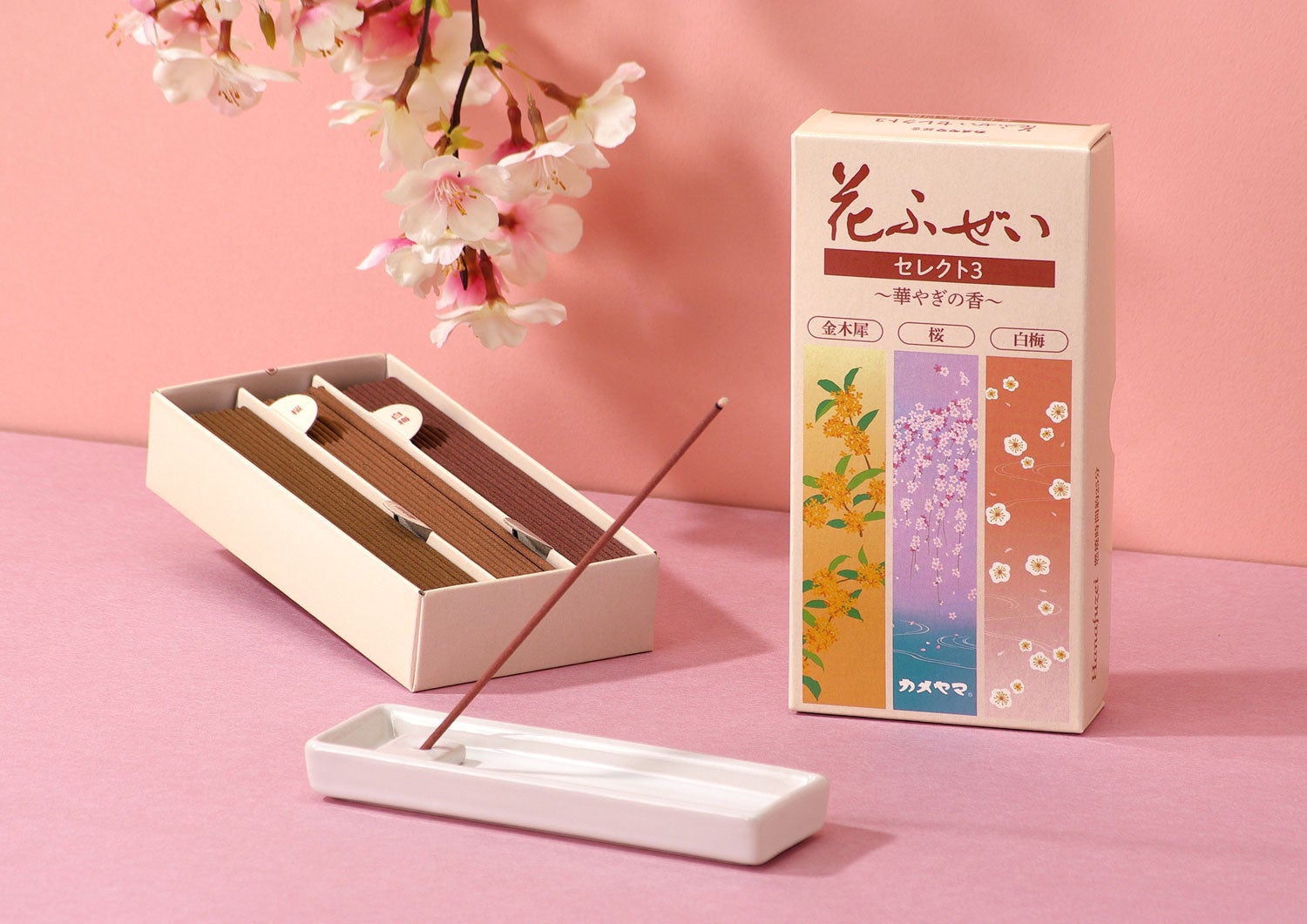 カメヤマのお線香「花ふぜい」シリーズから人気の香りの詰め合わせ「セレクト3」が2種類新発売