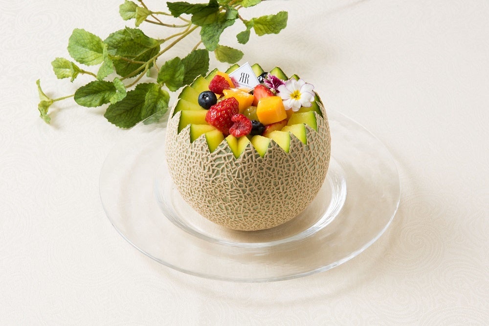 この時期に旬を迎える甘く芳醇な香りのマスクメロンを文字通り丸ごと贅沢に使用したケーキです。食べ頃の味、品質共に優れたマスクメロンをパティシエが選び、その中身をくり抜いて器にし、生クリームとスポンジ、メロンのジュレを層にしました。メロンやマンゴー、苺などのフルーツとエディブルフラワーを飾り華やかな見た目に仕上げています。ジューシーな甘みを素材まるごとご堪能いただける「丸ごとマスクメロンケーキ」は、「初夏の贈り物」にもぴったりの涼しげなひと品です。