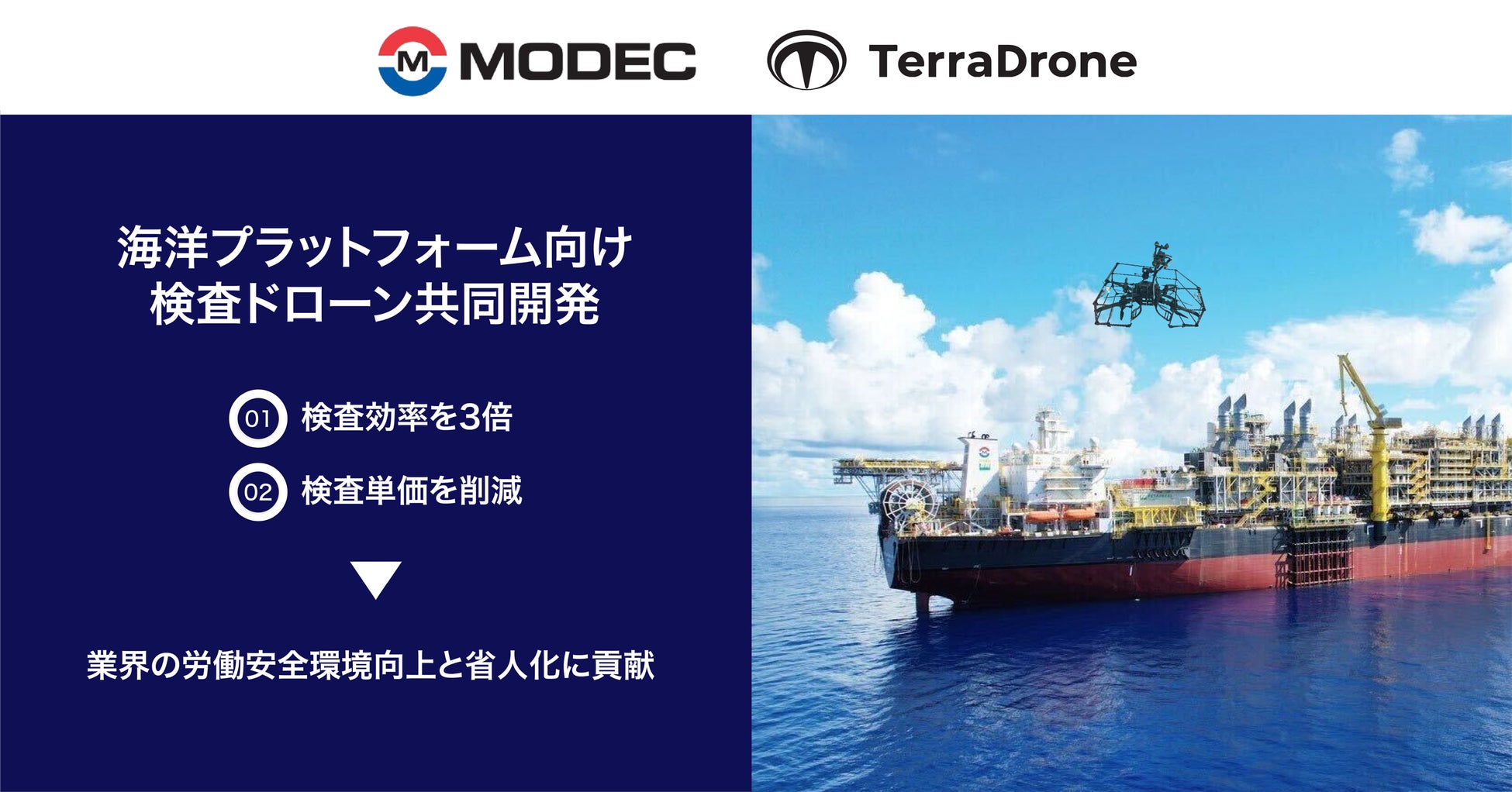 Terra Drone株式会社(本社:東京都渋谷区、代表:徳重 徹、以下 テラドローン)と三井海洋開発株式会社(本社:東京都中央区、代表取締役社長:宮田 裕彦、以下 三井海洋開発)は、海洋プラットフォーム向け検査ドローンの共同研究開発契約(以下「本契約」)を締結したことをお知らせいたします。本契約は、2023年11月7日に両社が締結した覚書に基づき実施するものです。