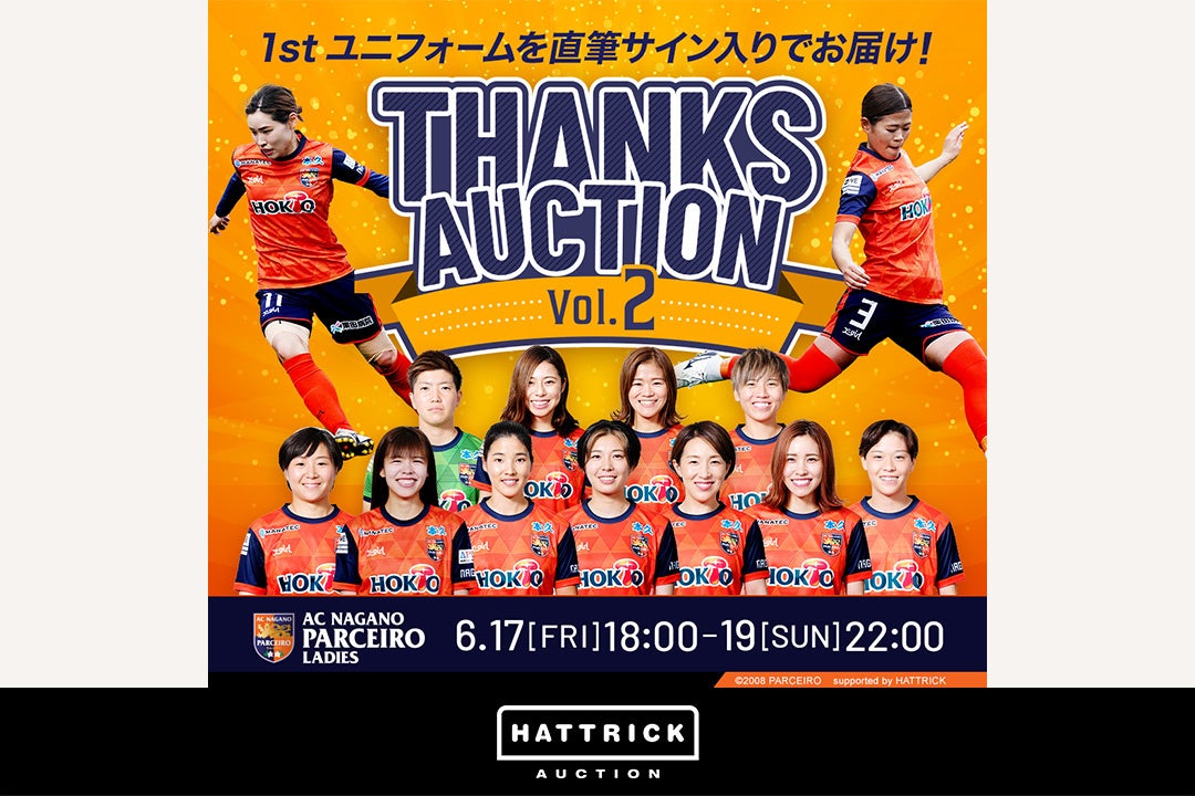 あらゆるステークホルダーへ人生を変える価値を提供し、一人ひとりが「らしく、生きる。」世界の実現を目指すバリュエンスジャパン株式会社(本社:東京都港区、代表:六車 進、以下 当社)は、同社が運営するスポーツチーム公認オークション「HATTRICK(https://auction.hattrick.world/)」にて、AC長野パルセイロ・レディース ファン感謝オークション【第1弾】を開催中。そして、2022年6月17日(金)より【第2弾】を、6月21日(火)より【第3弾】、6月24日(金)より【第4弾】を開催いたします。