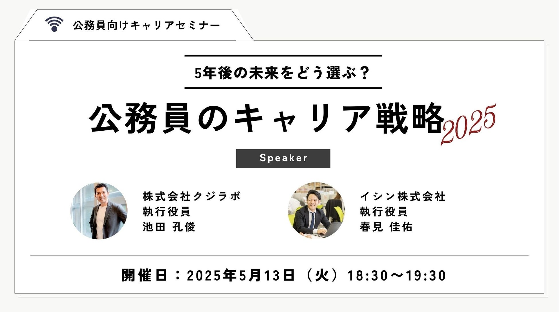 【5月13日開催決定!】クジラボ×自治体通信共催セミナー「5年後の未来をどう選ぶ? 公務員のキャリア戦略2025」を開催します