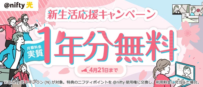 ニフティ、月額料金1年分が実質無料に!新生活応援キャンペーンを実施