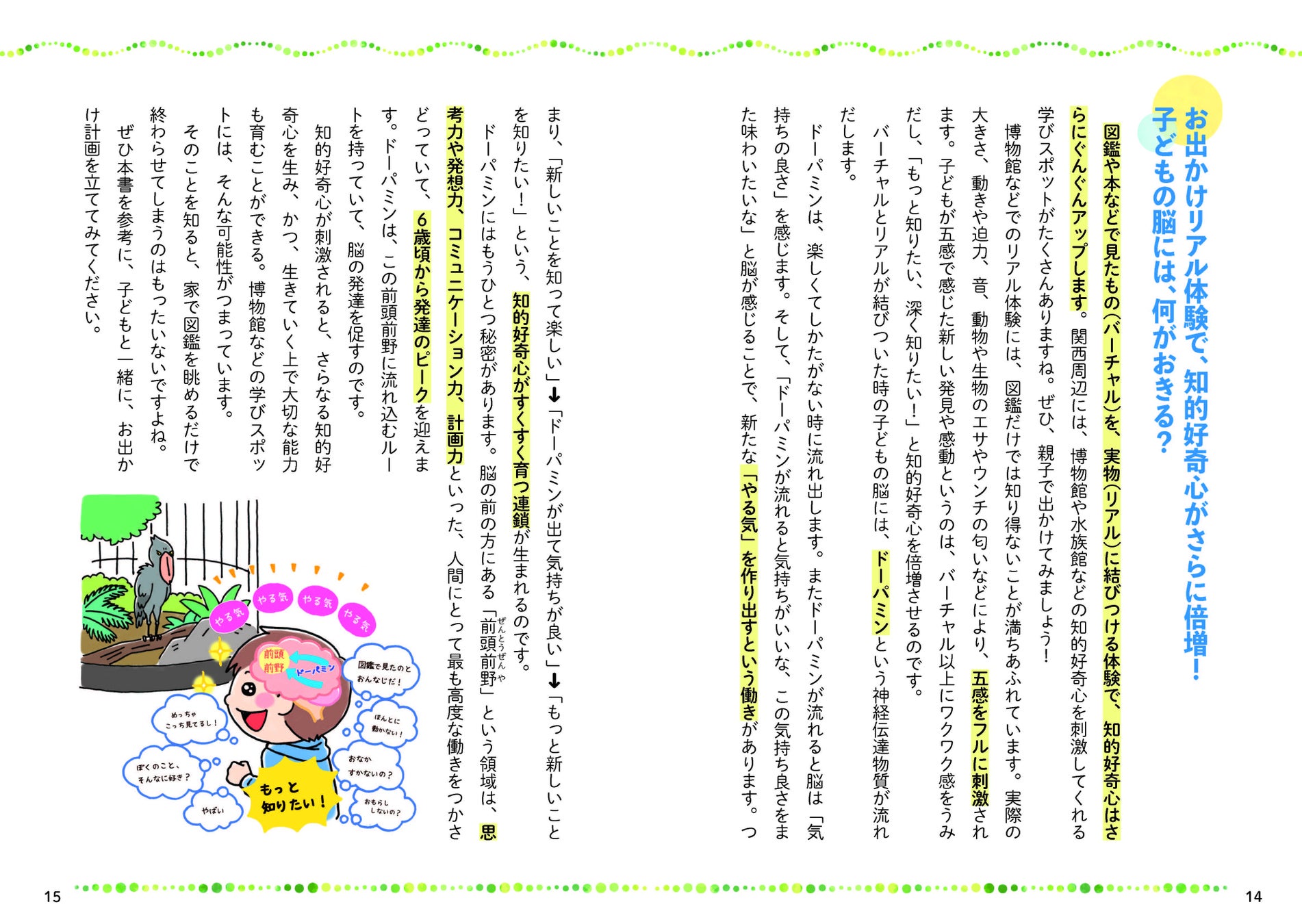 そして、おでかけ前に自宅にある図鑑や関連本を親子で一緒に読むと、より効果的です。子どもだけでなく親自身もワクワクする気持ちをもちながら一緒に楽しむことが、子どもの興味関心を広げるのになにより大切なことなのです。