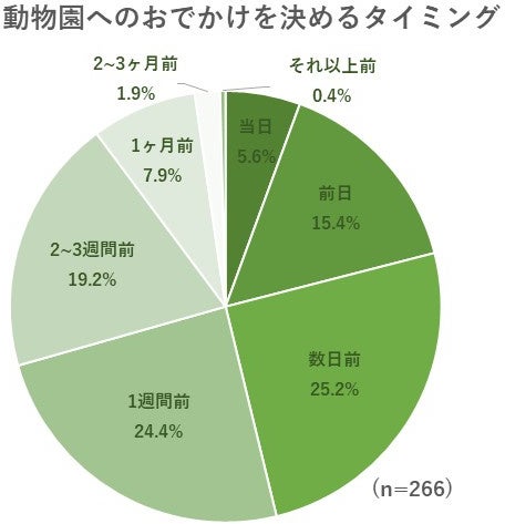 - 動物園のおでかけを決めるタイミングは「数日前~1週間前」が多く、当日は少ない