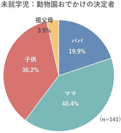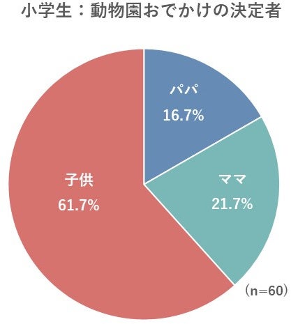 - 動物園へのおでかけの決定者は小学生の場合「子供」が6割、未就学児の場合「子供」と「ママ」が4割ずつ